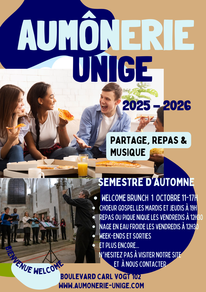 L'aumônerie est située au bd. Carl-Vogt 102, arcade d'Uni-mail. N'hésitez pas à nous contacter pour un rendez-vous, les horaires sont indicatifs,